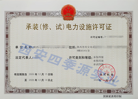 四級承裝類承裝(修、試)電力設(shè)施許可證的,可以從事35千伏以下電壓等級電力設(shè)施的安裝活動